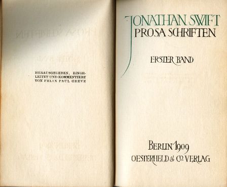 Title Page of Swift's "Prosa Schriften" - v.1, 1909